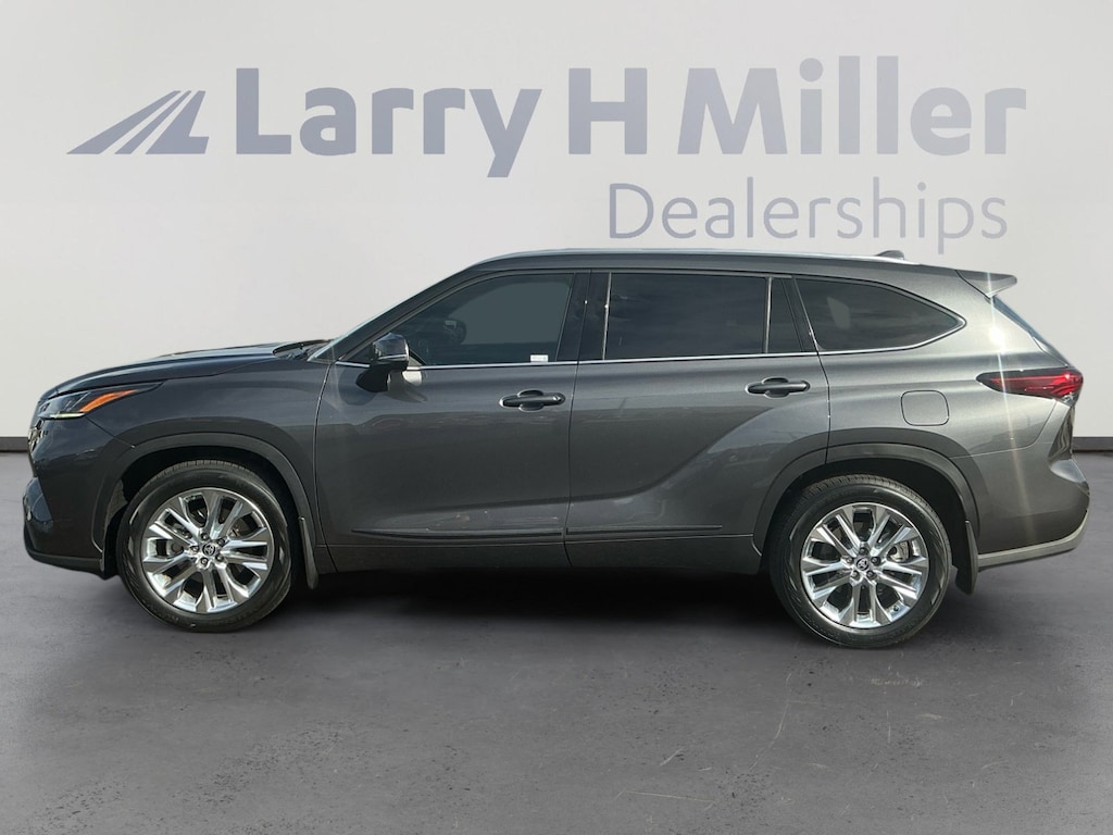 This 2023 Magnetic Gray Metallic Toyota Highlander Limited AWD is well equipped and includes these features and benefits: AWD, 11 Speakers, 3.329 Axle Ratio, 3rd row seats: split-bench, 4-Wheel Disc Brakes, ABS brakes, Air Conditioning, Alloy wheels, AM/FM radio: SiriusXM, Apple CarPlay/Android Auto, Auto High-beam Headlights, Auto-dimming Rear-View mirror, Automatic temperature control, Brake assist, Bumpers: body-color, Chrome wheels, Delay-off headlights, Driver door bin, Driver vanity mirror, Dual front impact airbags, Dual front side impact airbags, Electronic Stability Control, Emergency communication system: Safety Connect (up to 10-year trial subscription), Exterior Parking Camera Rear, Four wheel independent suspension, Front anti-roll bar, Front Bucket Seats, Front Center Armrest, Front dual zone A/C, Front fog lights, Front reading lights, Fully automatic headlights, Garage door transmitter: HomeLink, Heated door mirrors, Heated front seats, Heated steering wheel, Heated/Ventilated Front Bucket Seats, Illuminated entry, Knee airbag, Leather Seat Trim, Leather Shift Knob, Leather steering wheel, Low tire pressure warning, Memory seat, Navigation system: Drive Connect Cloud Navigation (1-year trial subscription), Occupant sensing airbag, Outside temperature display, Overhead airbag, Overhead console, Panic alarm, Panoramic View Monitor, Passenger door bin, Passenger vanity mirror, Power door mirrors, Power driver seat, Power Liftgate, Power moonroof, Power passenger seat, Power steering, Power windows, Radio: 12.3 Toyota Audio Multimedia w/JBL Premium, Rear air conditioning, Rear anti-roll bar, Rear reading lights, Rear window defroster, Rear window wiper, Reclining 3rd row seat, Remote keyless entry, Roof rack: rails only, Security system, Speed control, Speed-sensing steering, Split folding rear seat, Spoiler, Steering wheel mounted audio controls, Tachometer, Telescoping steering wheel, Tilt steering wheel, Traction control, Trip computer, Turn signal indicator mirrors, Variably intermittent wipers, Ventilated front seats, and Wheels: 20 Chrome Finished Alloy. AWD, 11 Speakers, 3.329 Axle Ratio, 3rd row seats: split-bench, 4-Wheel Disc Brakes, ABS brakes, Air Conditioning, Alloy wheels, AM/FM radio: SiriusXM, Apple CarPlay/Android Auto, Auto High-beam Headlights, Auto-dimming Rear-View mirror, Automatic temperature control, Brake assist, Bumpers: body-color, Chrome wheels, Delay-off headlights, Driver door bin, Driver vanity mirror, Dual front impact airbags, Dual front side impact airbags, Electronic Stability Control, Emergency communication system: Safety Connect (up to 10-year trial subscription), Exterior Parking Camera Rear, Four wheel independent suspension, Front anti-roll bar, Front Bucket Seats, Front Center Armrest, Front dual zone A/C, Front fog lights, Front reading lights, Fully automatic headlights, Garage door transmitter: HomeLink, Heated door mirrors, Heated front seats, Heated steering wheel, Heated/Ventilated Front Bucket Seats, Illuminated entry, Knee airbag, Leather Seat Trim, Leather Shift Knob, Leather steering wheel, Low tire pressure warning, Memory seat, Navigation system: Drive Connect Cloud Navigation (1-year trial subscription), Occupant sensing airbag, Outside temperature display, Overhead airbag, Overhead console, Panic alarm, Panoramic View Monitor, Passenger door bin, Passenger vanity mirror, Power door mirrors, Power driver seat, Power Liftgate, Power moonroof, Power passenger seat, Power steering, Power windows, Radio: 12.3 Toyota Audio Multimedia w/JBL Premium, Rear air conditioning, Rear anti-roll bar, Rear reading lights, Rear window defroster, Rear window wiper, Reclining 3rd row seat, Remote keyless entry, Roof rack: rails only, Security system, Speed control, Speed-sensing steering, Split folding rear seat, Spoiler, Steering wheel mounted audio controls, Tachometer, Telescoping steering wheel, Tilt steering wheel, Traction control, Trip compu