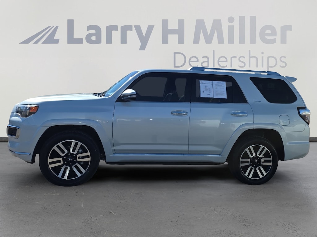 This 2024 / Toyota 4Runner Limited 4WD is well equipped and includes these features and benefits: 4WD, Leather, 15 Speakers, 3.727 Axle Ratio, 4-Wheel Disc Brakes, ABS brakes, Air Conditioning, Alloy wheels, AM/FM radio: SiriusXM, Anti-whiplash front head restraints, Apple CarPlay/Android Auto, Auto High-beam Headlights, Auto-dimming Rear-View mirror, Automatic temperature control, Brake assist, Bumpers: body-color, Compass, Delay-off headlights, Driver door bin, Driver vanity mirror, Dual front impact airbags, Dual front side impact airbags, Dual Zone Auto Climate Control, Electronic Stability Control, Emergency communication system: Safety Connect (1-year trial), Exterior Parking Camera Rear, Front anti-roll bar, Front Bucket Seats, Front Center Armrest, Front dual zone A/C, Front fog lights, Front reading lights, Front wheel independent suspension, Fully automatic headlights, Garage Door Opener, Garage door transmitter: HomeLink, Heated & Ventilated Front Bucket Seats, Heated door mirrors, Heated front seats, Heated Outside Rear-View Mirrors, Heated steering wheel, Illuminated entry, Knee airbag, Leather Seat Trim, Low tire pressure warning, Memory seat, Moonroof w/Tilt Up & Slide, Navigation System, Occupant sensing airbag, Outside temperature display, Overhead airbag, Overhead console, Panic alarm, Panoramic Back Monitor, Passenger door bin, Passenger vanity mirror, Power door mirrors, Power driver seat, Power moonroof, Power passenger seat, Power steering, Power windows, Radio: Premium Audio w/JBL, Rear anti-roll bar, Rear seat center armrest, Rear window defroster, Rear window wiper, Remote keyless entry, Security system, Silver Roof Rails, Speed control, Speed-sensing steering, Split folding rear seat, Spoiler, Steering wheel mounted audio controls, Tachometer, Telescoping steering wheel, Tilt steering wheel, Traction control, Trip computer, Turn signal indicator mirrors, Variably intermittent wipers, Ventilated front seats, and Wheels: 20" Unique Dual 6-Spoke Alloy. 4WD, Leather. CARFAX One-Owner.