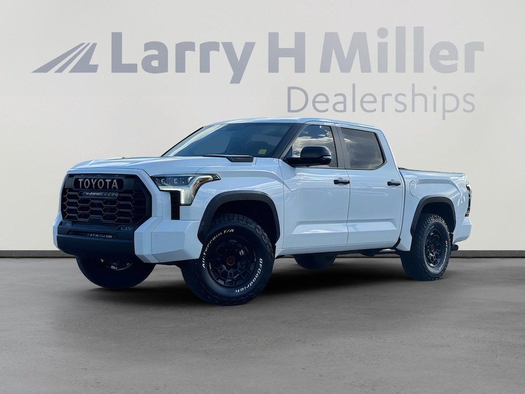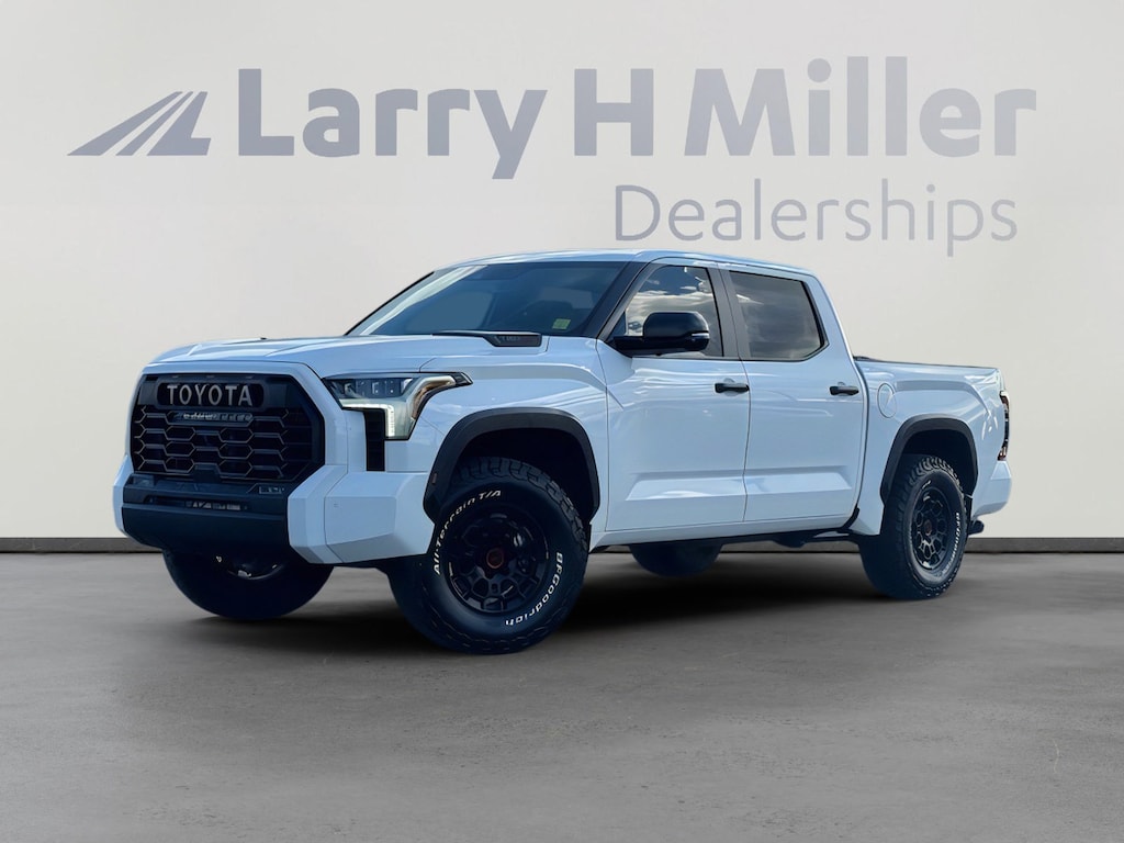 This 2024 Wind Chill Pearl Toyota Tundra Hybrid TRD Pro 4WD is well equipped and includes these features and benefits: 3.4L V6, 12 Speakers, 3.31 Axle Ratio, 4-Wheel Disc Brakes, ABS brakes, Air Conditioning, Alloy wheels, AM/FM radio: SiriusXM, Apple CarPlay/Android Auto, Auto High-beam Headlights, Auto-dimming door mirrors, Auto-dimming Rear-View mirror, Automatic temperature control, Brake assist, Bumpers: body-color, Delay-off headlights, Driver door bin, Driver vanity mirror, Dual front impact airbags, Dual front side impact airbags, Electronic Stability Control, Emergency communication system: Safety Connect (10-year trial), Exterior Parking Camera Rear, Front anti-roll bar, Front Bucket Seats, Front Center Armrest, Front dual zone A/C, Front fog lights, Front reading lights, Front wheel independent suspension, Fully automatic headlights, Garage door transmitter: HomeLink, Heated & Ventilated Front Bucket Seats, Heated door mirrors, Heated front seats, Heated steering wheel, Illuminated entry, Knee airbag, Leather Shift Knob, Low tire pressure warning, Memory seat, Navigation System, Occupant sensing airbag, Outside temperature display, Overhead airbag, Overhead console, Panic alarm, Passenger door bin, Passenger vanity mirror, Power door mirrors, Power driver seat, Power moonroof, Power passenger seat, Power steering, Power windows, Radio data system, Radio: Premium Audio w/JBL, Rear reading lights, Rear seat center armrest, Rear step bumper, Rear window defroster, Remote keyless entry, Security system, SofTex Seat Trim, Speed control, Speed-sensing steering, Split folding rear seat, Sport steering wheel, Steering wheel mounted audio controls, Tachometer, Telescoping steering wheel, Tilt steering wheel, Traction control, Trip computer, Turn signal indicator mirrors, Variably intermittent wipers, Ventilated front seats, Voltmeter, and Wheels: 18 x 8 Black BBS Forged Aluminum. 3.4L V6, 12 Speakers, 3.31 Axle Ratio, 4-Wheel Disc Brakes, ABS brakes, Air Conditioning, Alloy wheels, AM/FM radio: SiriusXM, Apple CarPlay/Android Auto, Auto High-beam Headlights, Auto-dimming door mirrors, Auto-dimming Rear-View mirror, Automatic temperature control, Brake assist, Bumpers: body-color, Delay-off headlights, Driver door bin, Driver vanity mirror, Dual front impact airbags, Dual front side impact airbags, Electronic Stability Control, Emergency communication system: Safety Connect (10-year trial), Exterior Parking Camera Rear, Front anti-roll bar, Front Bucket Seats, Front Center Armrest, Front dual zone A/C, Front fog lights, Front reading lights, Front wheel independent suspension, Fully automatic headlights, Garage door transmitter: HomeLink, Heated & Ventilated Front Bucket Seats, Heated door mirrors, Heated front seats, Heated steering wheel, Illuminated entry, Knee airbag, Leather Shift Knob, Low tire pressure warning, Memory seat, Navigation System, Occupant sensing airbag, Outside temperature display, Overhead airbag, Overhead console, Panic alarm, Passenger door bin, Passenger vanity mirror, Power door mirrors, Power driver seat, Power moonroof, Power passenger seat, Power steering, Power windows, Radio data system, Radio: Premium Audio w/JBL, Rear reading lights, Rear seat center armrest, Rear step bumper, Rear window defroster, Remote keyless entry, Security system, SofTex Seat Trim, Speed control, Speed-sensing steering, Split folding rear seat, Sport steering wheel, Steering wheel mounted audio controls, Tachometer, Telescoping steering wheel, Tilt steering wheel, Traction control, Trip computer, Turn signal indicator mirrors, Variably intermittent wipers, Ventilated front seats, Voltmeter, Wheels: 18 x 8 Black BBS Forged Aluminum, 3.4L V6.