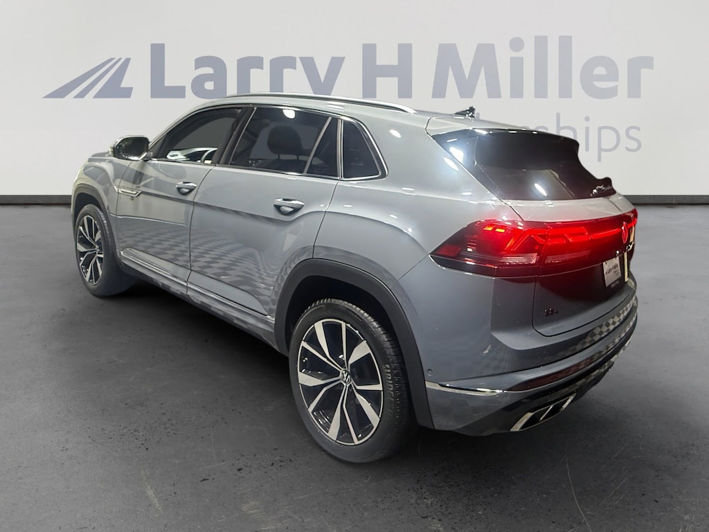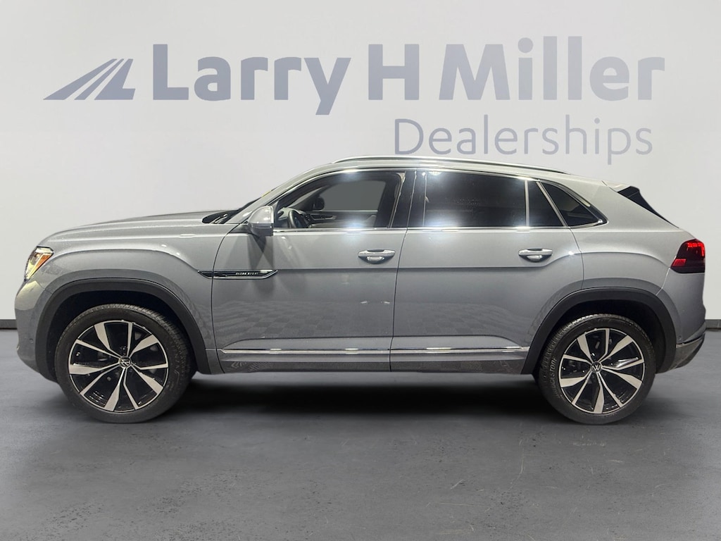 This 2024 Platinum Gray Metallic Volkswagen Atlas Cross Sport 2.0T SEL Premium R-Line AWD is well equipped and includes these features and benefits: 3.60 Axle Ratio, 4-Wheel Disc Brakes, 4-Wheel Independent Suspension, 6 Speakers, ABS brakes, Air Conditioning, Alloy wheels, AM/FM radio: SiriusXM with 360L, Auto High-beam Headlights, Auto-dimming Rear-View mirror, Automatic temperature control, Brake assist, Bumpers: body-color, Compass, Delay-off headlights, Driver door bin, Driver vanity mirror, Dual front impact airbags, Dual front side impact airbags, Electronic Stability Control, Emergency communication system: VW Car-Net Safe & Secure 5-year, Exterior Parking Camera Rear, Four wheel independent suspension, Front anti-roll bar, Front Bucket Seats, Front Center Armrest, Front dual zone A/C, Front fog lights, Front reading lights, Fully automatic headlights, harman/kardon® Speakers, Heads-Up Display, Heated & Actively Ventilated Front Seats, Heated door mirrors, Heated front seats, Heated rear seats, Heated steering wheel, Illuminated entry, Leather steering wheel, Low tire pressure warning, Memory seat, Navigation System, Occupant sensing airbag, Outside temperature display, Overhead airbag, Overhead console, Panic alarm, Passenger door bin, Passenger vanity mirror, Perforated Vienna Leather Seating Surfaces, Power door mirrors, Power driver seat, Power Liftgate, Power moonroof: Panoramic, Power passenger seat, Power steering, Power windows, Radio data system, Radio: MIB3 Discover Media Navigation AM/FM/HD, Rain sensing wipers, Rear anti-roll bar, Rear audio controls, Rear reading lights, Rear seat center armrest, Rear window defroster, Rear window wiper, Remote keyless entry, Security system, Speed control, Speed-sensing steering, Split folding rear seat, Spoiler, Sport steering wheel, Steering wheel mounted audio controls, Tachometer, Telescoping steering wheel, Tilt steering wheel, Traction control, Trip computer, Turn signal indicator mirrors, Variably intermittent wipers, Ventilated front seats, and Wheels: 21 2-Tone Machined Alloy. 19/26 City/Highway MPG