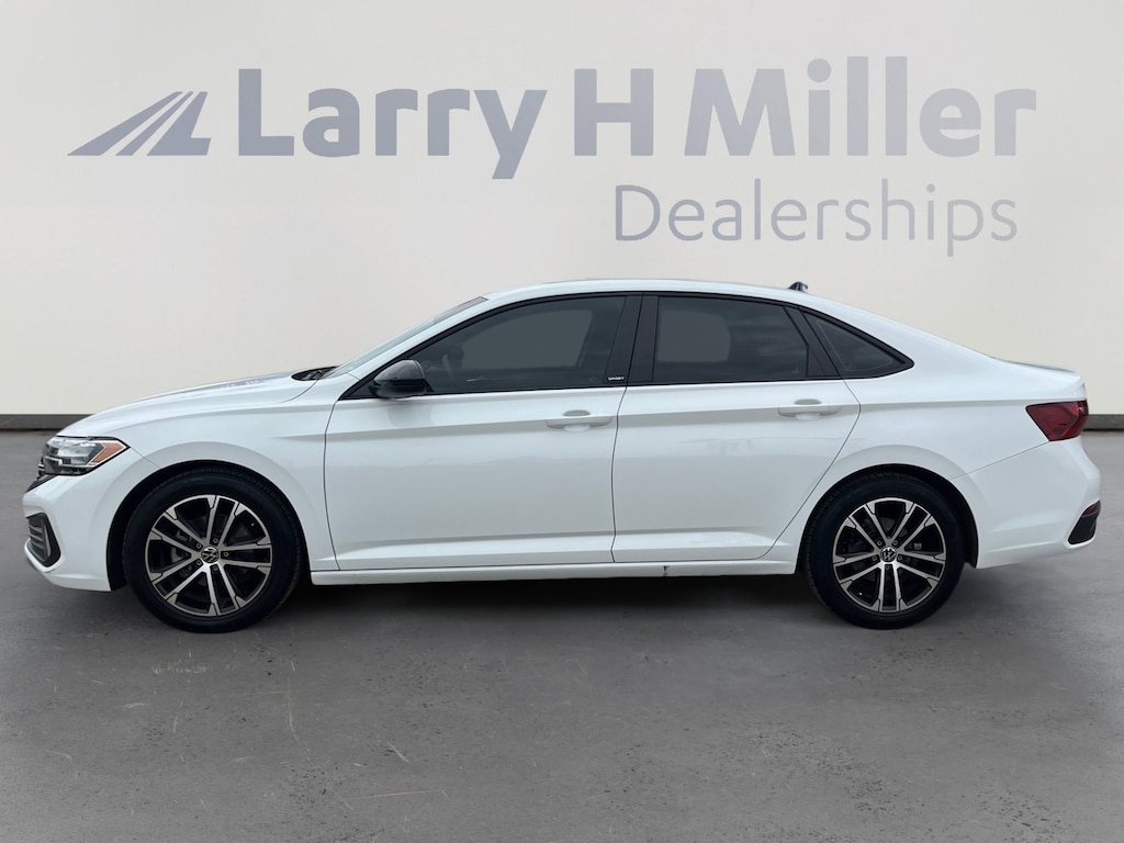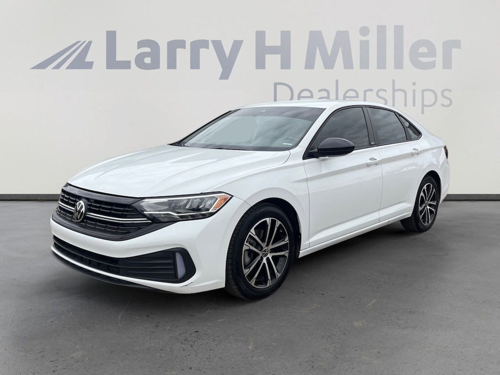 This 2024 Pure White Volkswagen Jetta 1.5T Sport FWD is well equipped and includes these features and benefits: Titan Black Cloth, 4 Speakers, 4-Wheel Disc Brakes, ABS brakes, Active Blind Spot Monitor, Air Conditioning, Alloy wheels, Auto-dimming Rear-View mirror, Brake assist, Bumpers: body-color, Cloth Seat Trim, Delay-off headlights, Driver door bin, Driver vanity mirror, Dual front impact airbags, Dual front side impact airbags, Electronic Stability Control, Emergency communication system: VW Car-Net Safe & Secure 5-year, Exterior Parking Camera Rear, Front anti-roll bar, Front Bucket Seats, Front Center Armrest, Front wheel independent suspension, Fully automatic headlights, Heated door mirrors, Heated Front Seats, Heated front seats, Illuminated entry, Leather Shift Knob, Leather steering wheel, Low tire pressure warning, Occupant sensing airbag, Outside temperature display, Overhead airbag, Overhead console, Panic alarm, Passenger door bin, Passenger vanity mirror, Power door mirrors, Power steering, Power windows, Radio data system, Radio: MIB3 Composition Color w/6.5 Touchscreen, Rain sensing wipers, Rear anti-roll bar, Rear reading lights, Rear seat center armrest, Rear window defroster, Remote keyless entry, Speed control, Speed-sensing steering, Split folding rear seat, Steering wheel mounted audio controls, Tachometer, Telescoping steering wheel, Tilt steering wheel, Traction control, Trip computer, Variably intermittent wipers, and Wheels: 17 2-Tone Machined Alloy. Titan Black Cloth, 4 Speakers, 4-Wheel Disc Brakes, ABS brakes, Active Blind Spot Monitor, Air Conditioning, Alloy wheels, Auto-dimming Rear-View mirror, Brake assist, Bumpers: body-color, Cloth Seat Trim, Delay-off headlights, Driver door bin, Driver vanity mirror, Dual front impact airbags, Dual front side impact airbags, Electronic Stability Control, Emergency communication system: VW Car-Net Safe & Secure 5-year, Exterior Parking Camera Rear, Front anti-roll bar, Front Bucket Seats, Front Center Armrest, Front wheel independent suspension, Fully automatic headlights, Heated door mirrors, Heated Front Seats, Heated front seats, Illuminated entry, Leather Shift Knob, Leather steering wheel, Low tire pressure warning, Occupant sensing airbag, Outside temperature display, Overhead airbag, Overhead console, Panic alarm, Passenger door bin, Passenger vanity mirror, Power door mirrors, Power steering, Power windows, Radio data system, Radio: MIB3 Composition Color w/6.5 Touchscreen, Rain sensing wipers, Rear anti-roll bar, Rear reading lights, Rear seat center armrest, Rear window defroster, Remote keyless entry, Speed control, Speed-sensing steering, Split folding rear seat, Steering wheel mounted audio controls, Tachometer, Telescoping steering wheel, Tilt steering wheel, Traction control, Trip computer, Variably intermittent wipers, Wheels: 17 2-Tone Machined Alloy, Titan Black Cloth.