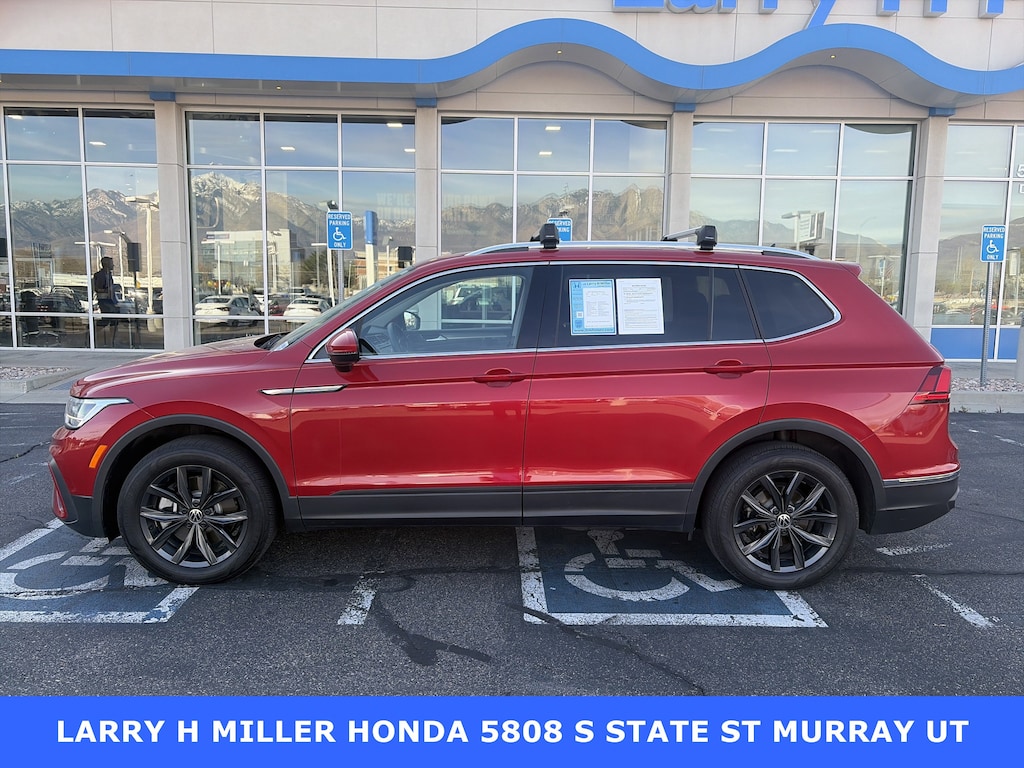 Larry H. Miller Honda Murray offers this 2024 Red Metallic Volkswagen Tiguan 2.0T SE AWD It is loaded with many standard and optional features including: Panoramic Sunroof Package, AWD, 2-Row Rubber Monster Mats Kit (Set of 4), 3.33 Axle Ratio, 4-Wheel Disc Brakes, 4-Wheel Independent Suspension, 6 Speakers, ABS brakes, Air Conditioning, Alloy wheels, AM/FM radio: SiriusXM with 360L, Auto-dimming Rear-View mirror, Automatic temperature control, Brake assist, Bumpers: body-color, Compass, Delay-off headlights, Driver door bin, Driver vanity mirror, Dual front impact airbags, Dual front side impact airbags, Electronic Stability Control, Emergency communication system: VW Car-Net Safe & Secure 5-year, Exterior Parking Camera Rear, First Aid Kit, Four wheel independent suspension, Front anti-roll bar, Front Bucket Seats, Front Center Armrest, Front dual zone A/C, Front reading lights, Fully automatic headlights, Heated door mirrors, Heated Front Seats, Heated front seats, Heavy Duty Trunk Liner w/VW CarGo Blocks, Illuminated entry, Leather Shift Knob, Low tire pressure warning, Occupant sensing airbag, Outside temperature display, Overhead airbag, Overhead console, Panic alarm, Passenger door bin, Passenger vanity mirror, Perforated V-Tex Leatherette Seating Surfaces, Power door mirrors, Power driver seat, Power Liftgate, Power steering, Power windows, Radio data system, Radio: MIB3 Composition Media AM/FM/HD, Rain sensing wipers, Rear anti-roll bar, Rear reading lights, Rear seat center armrest, Rear window defroster, Rear window wiper, Remote keyless entry, Roadside Assistance Kit, Security system, Speed control, Speed-sensing steering, Split folding rear seat, Spoiler, Steering wheel mounted audio controls, Tachometer, Telescoping steering wheel, Tilt steering wheel, Traction control, Trip computer, Turn signal indicator mirrors, Variably intermittent wipers, and Wheels: 18 Dark Graphite Painted 10-Spoke Alloy.