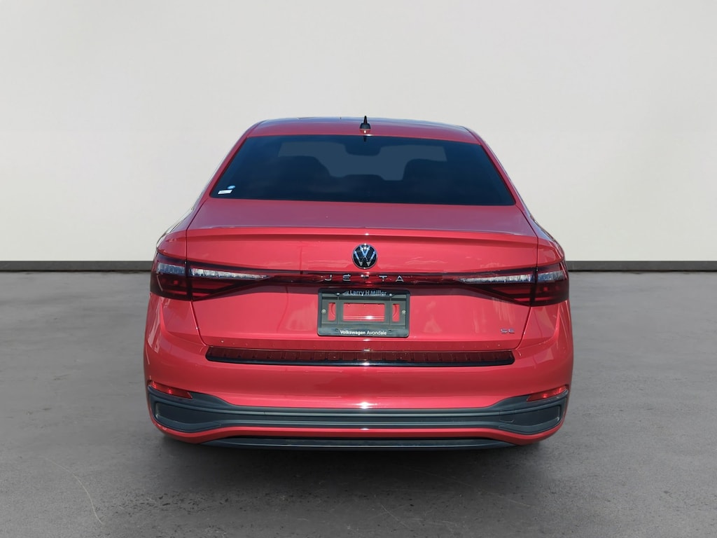 This 2025 Kings Red Metallic Volkswagen Jetta 1.5T SE FWD is well equipped and includes these features and benefits: Grigio/Titan Black Artificial Leather, 4-Wheel Disc Brakes, 6 Speakers, ABS brakes, Active Blind Spot Monitor, Air Conditioning, Alloy wheels, AM/FM radio: SiriusXM with 360L, Auto-dimming Rear-View mirror, Automatic temperature control, Brake assist, Bumpers: body-color, CloudTex & V-Tex Leatherette Seat Trim, Delay-off headlights, Driver door bin, Driver vanity mirror, Dual front impact airbags, Dual front side impact airbags, Electronic Stability Control, Emergency communication system: VW Car-Net Safe & Secure 5-year, Exterior Parking Camera Rear, Front anti-roll bar, Front Bucket Seats, Front Center Armrest, Front dual zone A/C, Front wheel independent suspension, Fully automatic headlights, Heated door mirrors, Heated Front Seats, Heated front seats, Illuminated entry, Leather Shift Knob, Leather steering wheel, Low tire pressure warning, Occupant sensing airbag, Outside temperature display, Overhead airbag, Overhead console, Panic alarm, Passenger door bin, Passenger vanity mirror, Power door mirrors, Power driver seat, Power steering, Power windows, Radio data system, Radio: MIB3 Composition Media w/8 Touchscreen, Rain sensing wipers, Rear anti-roll bar, Rear reading lights, Rear seat center armrest, Rear window defroster, Remote keyless entry, Speed control, Speed-sensing steering, Split folding rear seat, Steering wheel mounted audio controls, Tachometer, Telescoping steering wheel, Tilt steering wheel, Traction control, Trip computer, Variably intermittent wipers, and Wheels: 17 Twin 5-Spoke 2-Tone Machined Alloy. Grigio/Titan Black Artificial Leather, 4-Wheel Disc Brakes, 6 Speakers, ABS brakes, Active Blind Spot Monitor, Air Conditioning, Alloy wheels, AM/FM radio: SiriusXM with 360L, Auto-dimming Rear-View mirror, Automatic temperature control, Brake assist, Bumpers: body-color, CloudTex & V-Tex Leatherette Seat Trim, Delay-off headlights, Driver door bin, Driver vanity mirror, Dual front impact airbags, Dual front side impact airbags, Electronic Stability Control, Emergency communication system: VW Car-Net Safe & Secure 5-year, Exterior Parking Camera Rear, Front anti-roll bar, Front Bucket Seats, Front Center Armrest, Front dual zone A/C, Front wheel independent suspension, Fully automatic headlights, Heated door mirrors, Heated Front Seats, Heated front seats, Illuminated entry, Leather Shift Knob, Leather steering wheel, Low tire pressure warning, Occupant sensing airbag, Outside temperature display, Overhead airbag, Overhead console, Panic alarm, Passenger door bin, Passenger vanity mirror, Power door mirrors, Power driver seat, Power steering, Power windows, Radio data system, Radio: MIB3 Composition Media w/8 Touchscreen, Rain sensing wipers, Rear anti-roll bar, Rear reading lights, Rear seat center armrest, Rear window defroster, Remote keyless entry, Speed control, Speed-sensing steering, Split folding rear seat, Steering wheel mounted audio controls, Tachometer, Telescoping steering wheel, Tilt steering wheel, Traction control, Trip computer, Variably intermittent wipers, Wheels: 17 Twin 5-Spoke 2-Tone Machined Alloy, Grigio/Titan Black Artificial Leather.